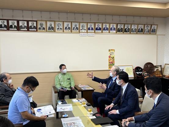 November 25, 2021, Kintaro cells Power paid a courtesy visit to Mayor Yamakawa at Tomigusuku City Hall in Okinawa Prefecture.